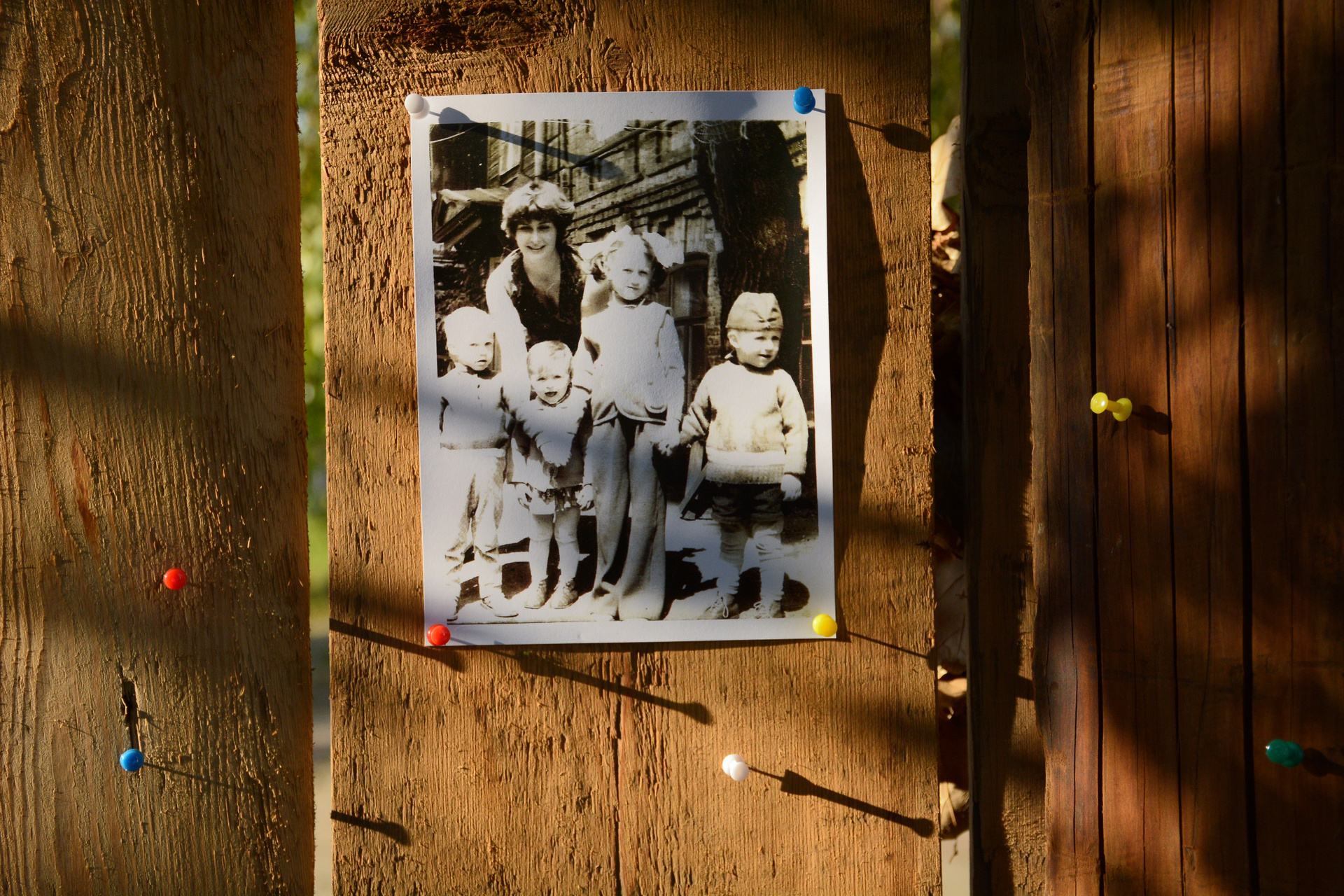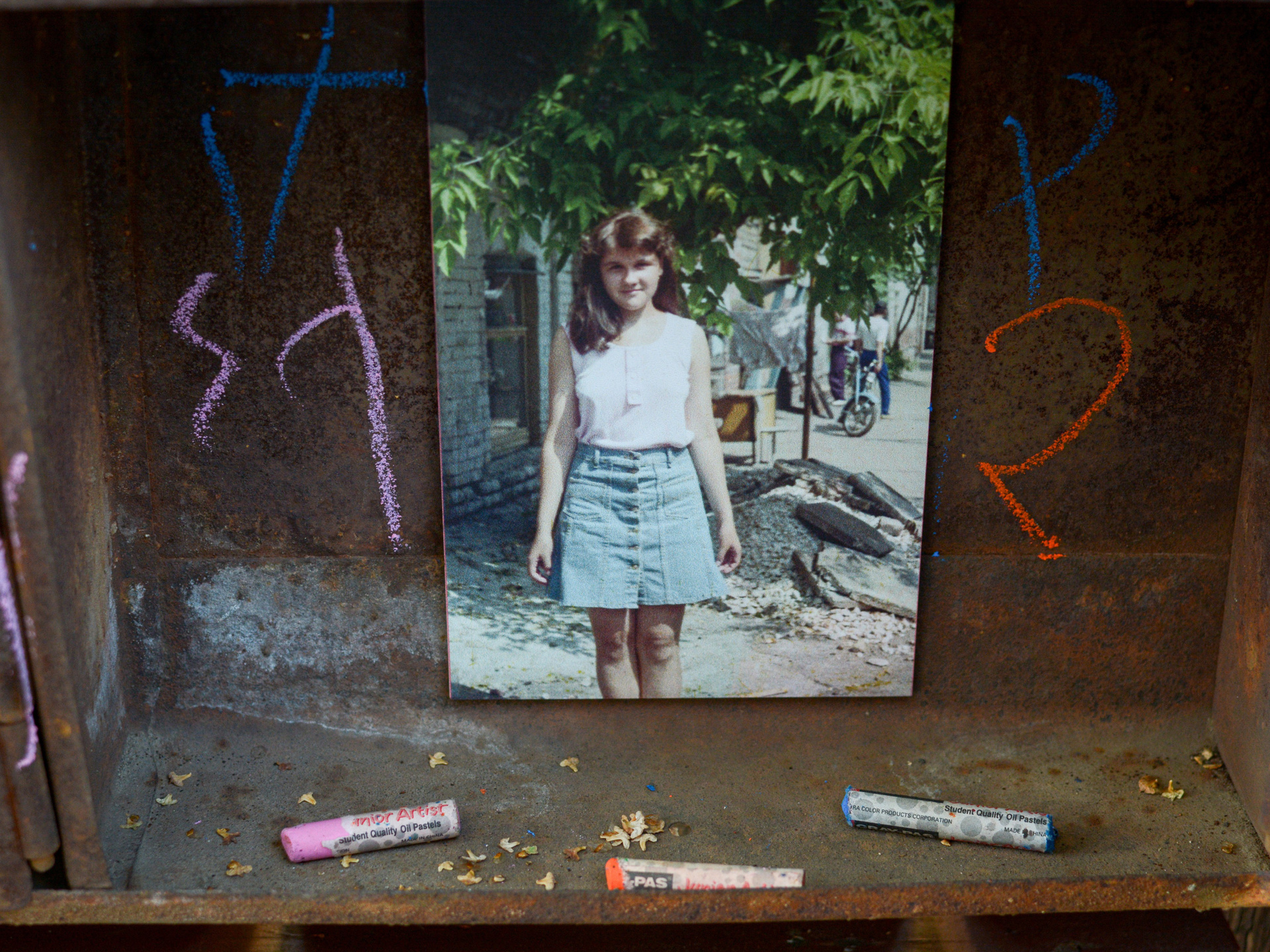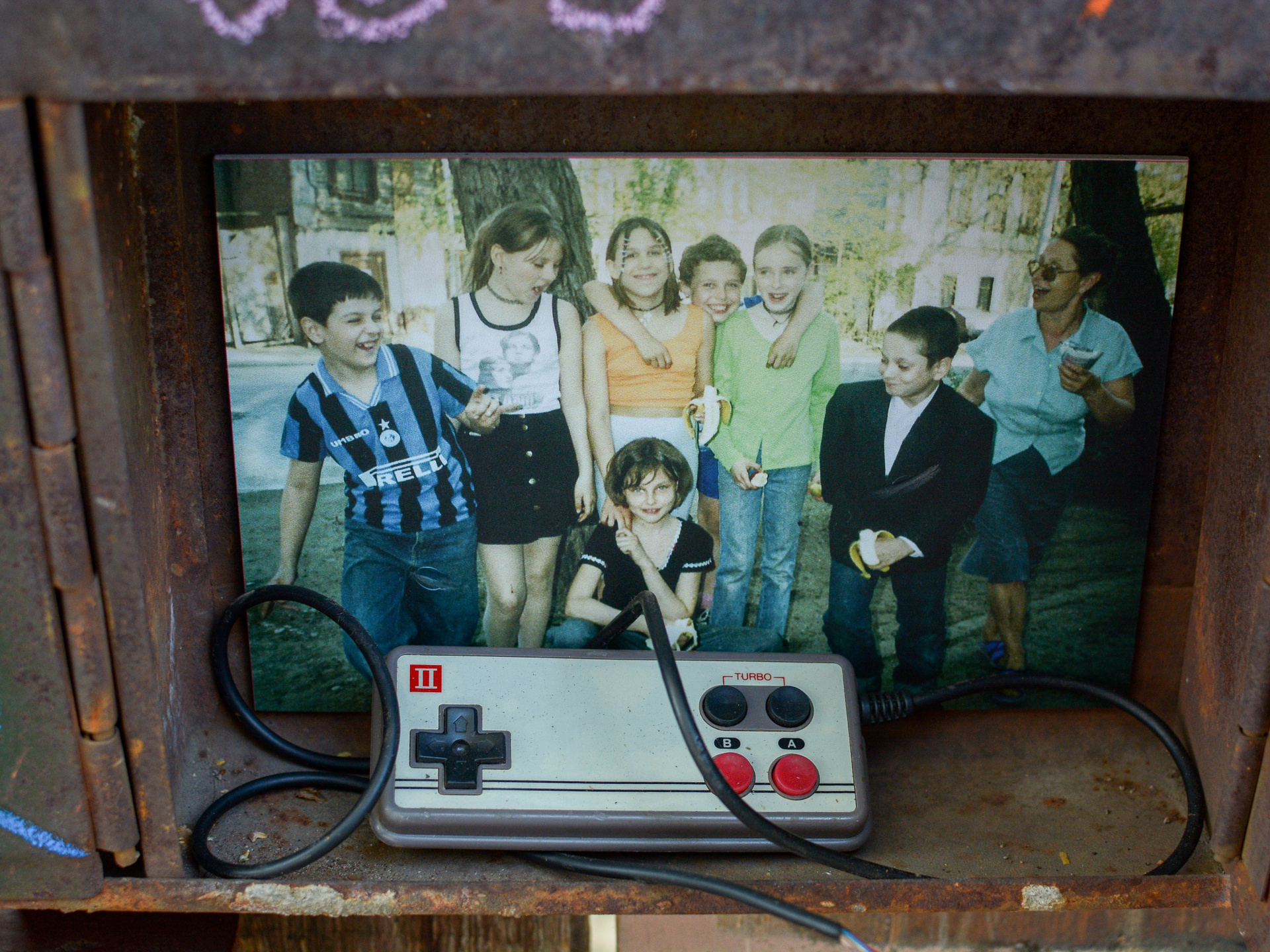 В почтовых ящиках лежат детские фотографии сегодняшних взрослых, росших в этом районе в 1960-х и 1990-х гг, а также артефакты тех времен. Снаружи представлен абстрактный антураж двора в супрематической манере.