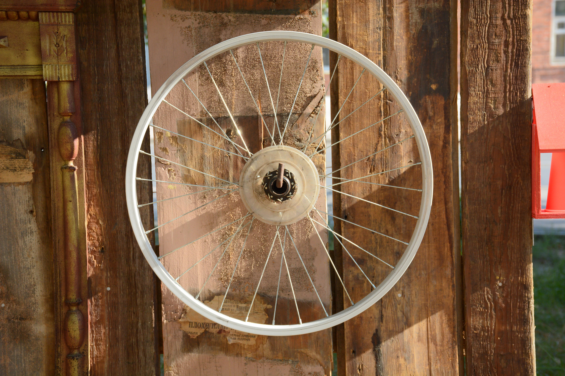 Доски и стойки взяты в ходе реставрации старейшего сохранившегося деревянного здания в Самаре (1850-1860-е гг). В народе его называют «Дом с часами» или усадьба купца Кожевникова. На фасаде располагались часы, по легенде показывающие время смерти внучки хозяина дома.